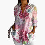 Imprimeu floral timpuriu: Imprimeul floral elegant în mai multe culori conferă bluzei un farmec vintage care rămâne mereu la modă.