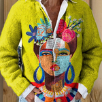Pulover cardigan cu nasturi, imprimeu artistic portret Freda în ulei
