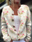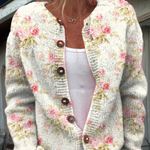 Pulover cardigan cu nasturi, imprimeu cu flori roz proaspete și frunze verzi