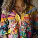 Această bluză combină un design vibrant de răsărit cu modele florale pline de viață, oferindu-ți un sentiment de libertate și creativitate.