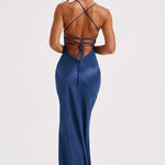 • Detalii: Fisură înaltă pe coapsă, spate deschis, bretele ajustabile