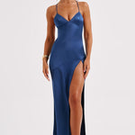 Amara – Rochie de Damă Maxi Satin Elegantă cu Fisură