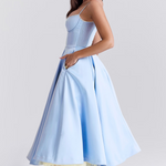 Imaginează-ți cum strălucești în rochia Benilda™, creată pentru a-ți evidenția frumusețea și eleganța la orice eveniment. Confecționată din satin duchesse fin și lustruit, combinat cu plasă powermesh respirabilă, această rochie oferă un echilibru perfect între confort și rafinament. Fusta midi din tul voluminos adaugă un plus de farmec și definește armonios silueta ta.