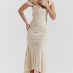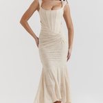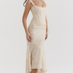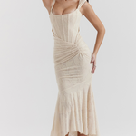 Rochia maxi Carisia este alegerea ideală pentru femeile care caută o rochie de seară elegantă sau o rochie lungă pentru evenimente speciale. Croiul sculptural și dantela delicată creează o siluetă sofisticată, perfectă pentru nunți, petreceri elegante sau cine festive.