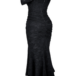 - Detalii: Talie drapată, bază asimetrică pentru eleganță și mișcare