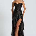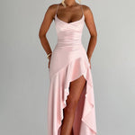 Seraphine – Rochie Maxi Elegantă cu Tiv High-Low și Fanta