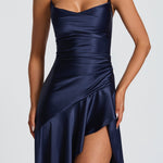 Seraphine – Rochie Maxi Damă Elegantă cu Tiv High-Low și Fanta