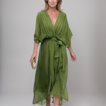 Rochia Aurora™ combină eleganța cu confortul, oferind un design rafinat și feminitate naturală. Croiala înfășurată evidențiază silueta într-un mod delicat, iar mânecile semi-transparente și tivul asimetric adaugă un plus de stil și sofisticare. Ideală pentru evenimente speciale, ținute de vară și seri romantice.