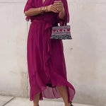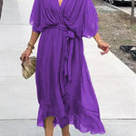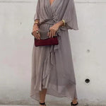 Aurora – Rochie Midi Damă din Chiffon, Stil Înfașurat, Vară