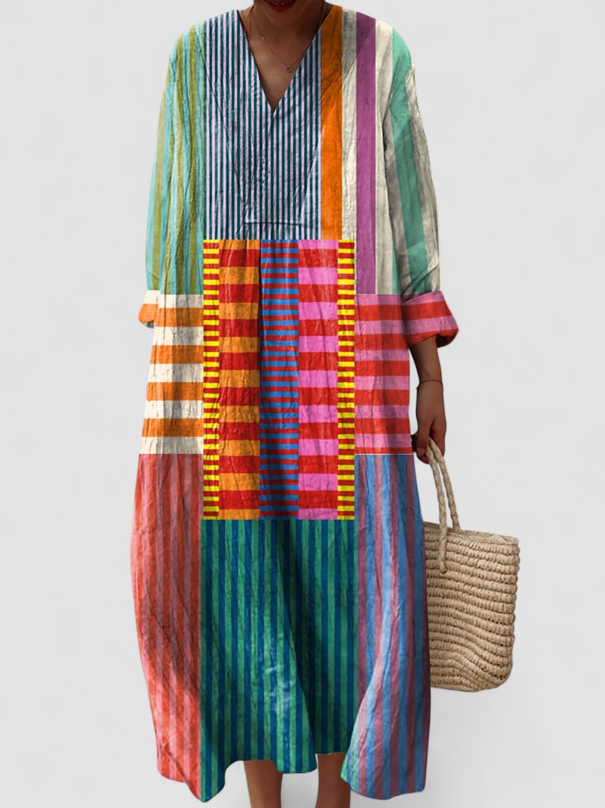 Rochia Chelo combină confortul bumbacului cu un model artistic inspirat de stilul vintage. Imprimarea sa geometrică adaugă un accent distinctiv și rafinat, ideal pentru femeile care caută un stil autentic. Datorită croiului avantajos și țesăturii ușoare, această rochie este perfectă pentru orice ocazie, de la plimbări casuale la evenimente speciale. Designul său atemporal și original te va face să te evidențiezi cu o eleganță unică.