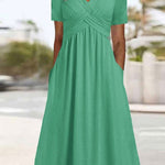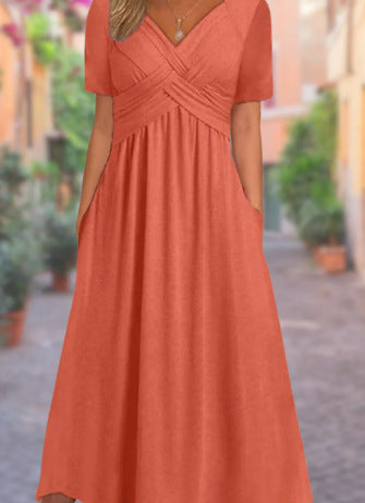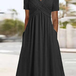 • Detalii speciale: Decolteu în V, cusătură la talie și două buzunare laterale discrete.