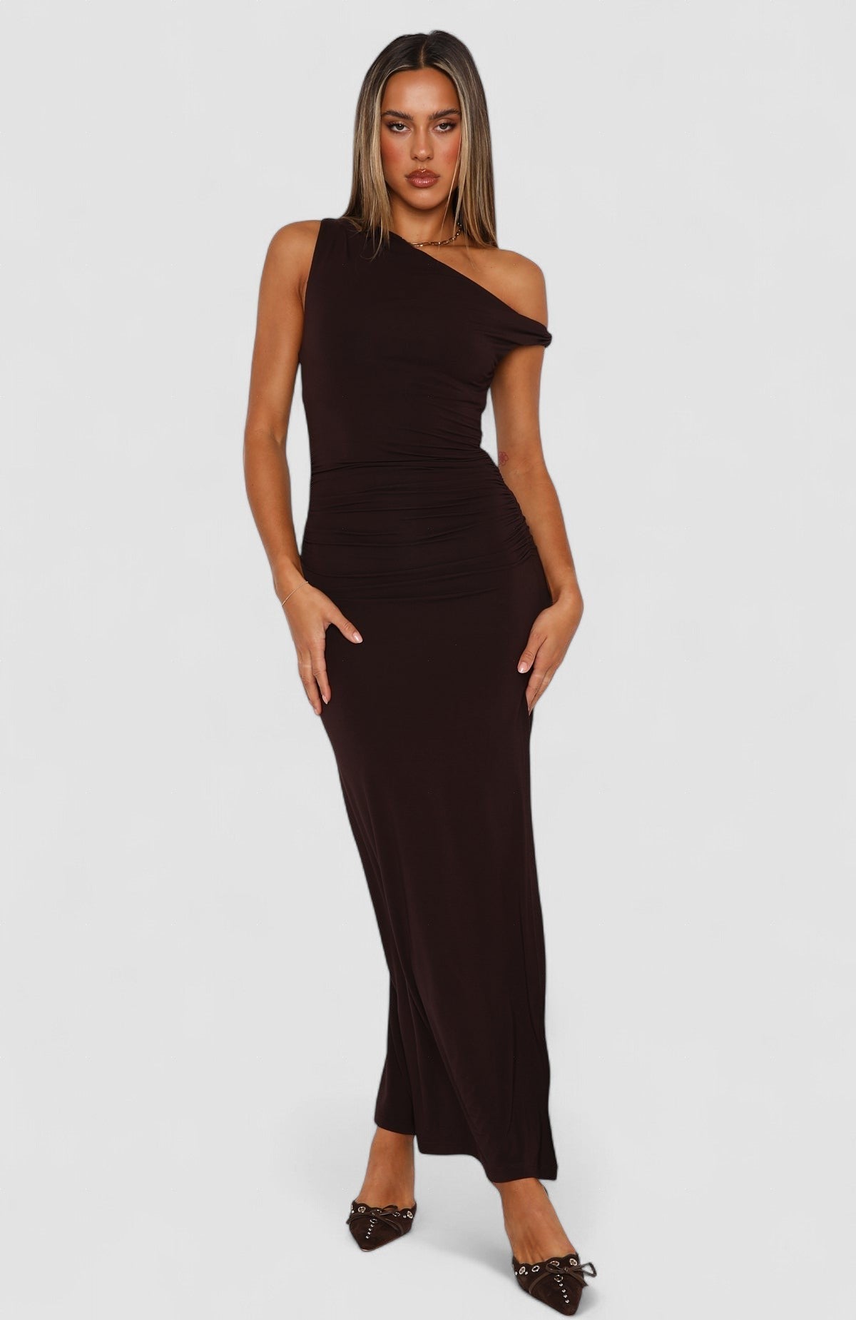 Rochia maxi elegantă Jade cu fante combină rafinamentul cu stilul modern, având un decolteu asimetric și fanta laterală înaltă până la coapsă. Este alegerea perfectă pentru petreceri cocktail, cine elegante sau evenimente la apus, aducând un plus de feminitate și sofisticare.