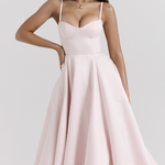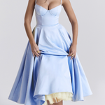 Julia™ | Rochie midi din satin cu corset este esența glamour-ului și feminității. Datorită corsetului modelator, fustei midi evazate și finisajului delicat lucios din satin, adaugă o notă de vechi Hollywood și finețe contemporană apariției tale. Ideală pentru gale, nunți sau o seară stilată cu un strop de efect Wow.