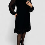 Rochia Leena combină rafinamentul și glamourul într-un design midi elegant, cu un decolteu rotund și detalii subtile strălucitoare. Perfectă pentru evenimente formale, cine elegante sau ocazii speciale, această rochie oferă confort și un stil impecabil, evidențiind silueta feminină într-un mod natural și sofisticat.