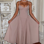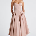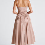Luminara – Rochie Midi Elegantă cu Top Ajustat și Fustă Voluminoasă