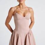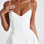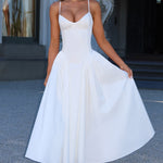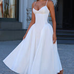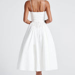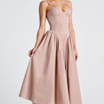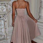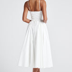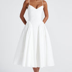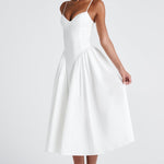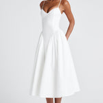 Rochia Luminara îmbină eleganța clasică cu un twist modern. Cu un top ajustat, decolteu în formă de inimă și o fustă midi voluminoasă, acest articol este perfect pentru petreceri de logodnă, nunți sau seri elegante.