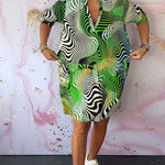 Caracteristică specială: Decolteu adânc în formă de V, imprimare expresivă, mâneci scurte