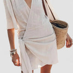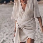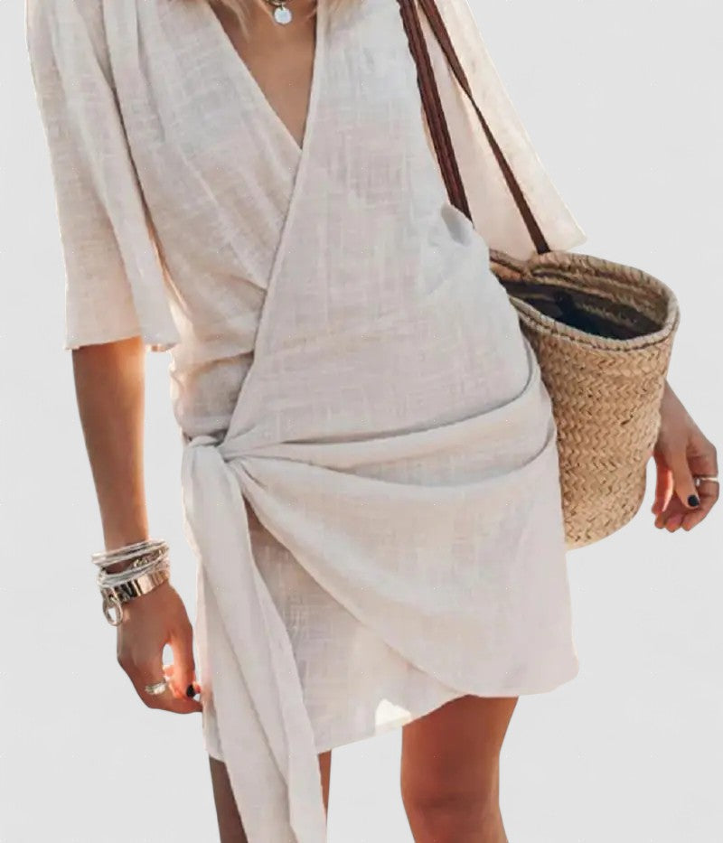 Angelin – Rochie elegantă din in cu decolteu în V, perfectă pentru vară