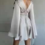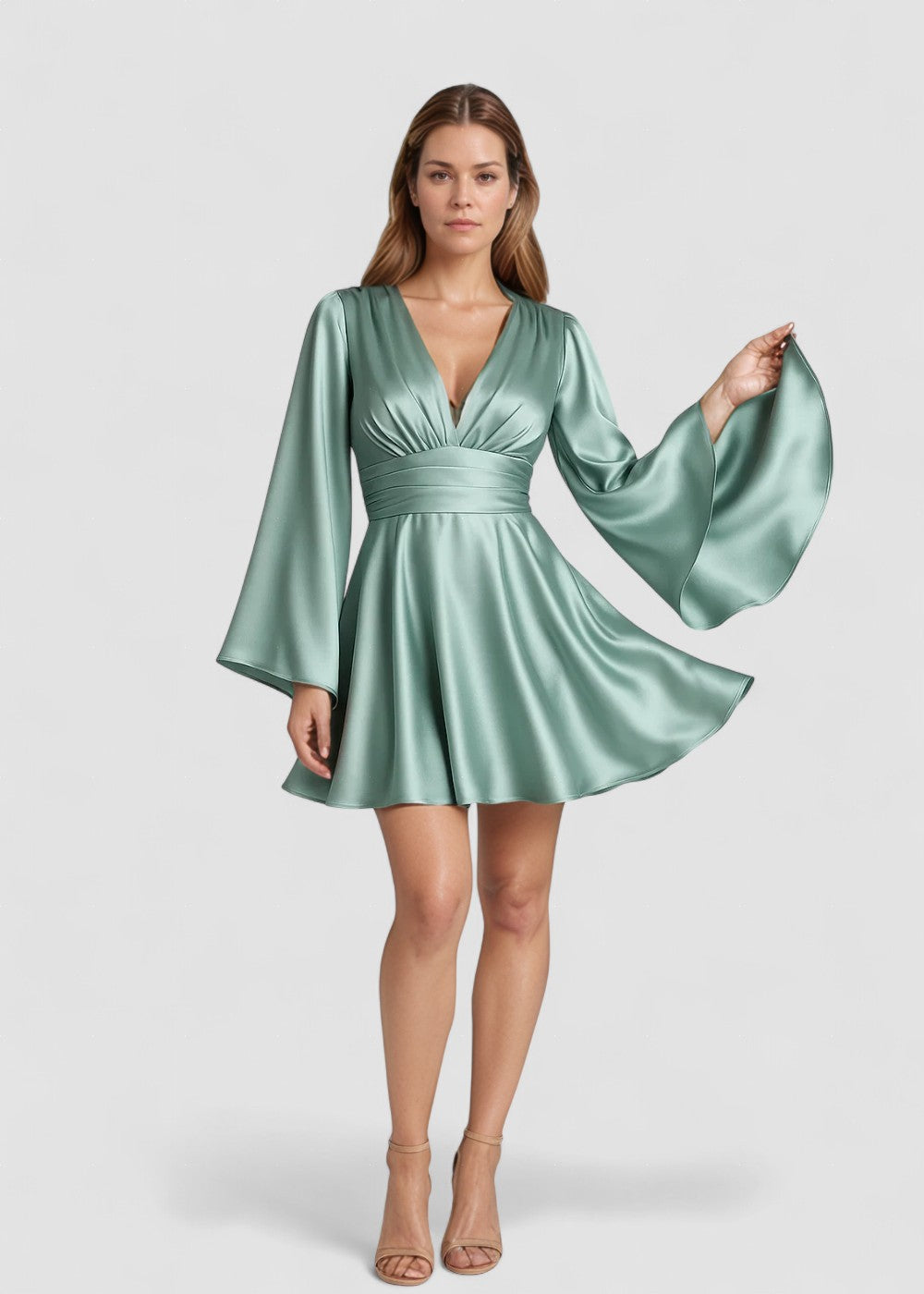 Darla – Rochie de Damă Elegantă din Satin cu Mâneci Largi