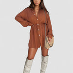 Lea™ | Rochie elegantă tip cămașă este combinația perfectă între eleganța clasică și modernul casual-chic. Datorită croiului lejer, curelei ajustabile în talie și butonierii complete, aceasta este un must-have în orice garderobă. Indiferent dacă ești la birou, la brunch sau în călătorie – această rochie va fi întotdeauna o alegere potrivită.