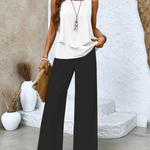 Intră în sezon cu setul Delta, unde confortul relaxat se întâlnește cu stilul atemporal. Cu un top chic fără mâneci și pantaloni largi fluidi, acest set asortat oferă un design ușor și respirabil, perfect pentru zilele însorite și serile cu briză. Fie că mergi la brunch, la o petrecere în grădină sau la o escapadă de weekend, Delta te menține elegant și confortabil.