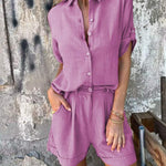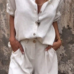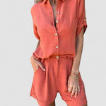 Setul Jolie din bumbac și in aduce un design atemporal și confort modern într-o ținută elegantă. Confecționat dintr-un amestec moale de bumbac și in și detaliat cu un rever structurat și cusături curate, acest set este alegerea ta pentru a arăta rafinat în timp ce rămâi răcoros. Indiferent dacă mergi la brunch, faci cumpărături sau te bucuri de o după-amiază relaxată, Jolie oferă echilibrul perfect între eleganță și confort.