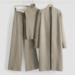 Look complet 3 în 1 – Include un cardigan lung deschis, pantaloni largi și un top fără mâneci cu guler înalt pentru straturi ușoare și stiluri mix-and-match.