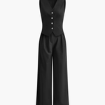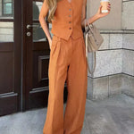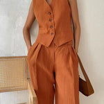Design: Un set elegant format dintr-un top lejer și pantaloni cu talie înaltă, realizat dintr-un amestec de bumbac și in pentru o ținută confortabilă și respirabilă.