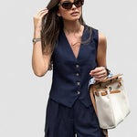 Tip de croi: Croi regulat atât pentru top, cât și pentru pantaloni scurți, conceput pentru confort cu un aer sofisticat.