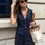 Set de pantaloni scurți casual în albastru închis cu buzunare