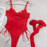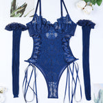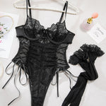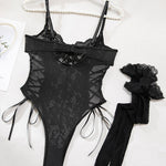 Christina™ | Body transparent din dantelă cu model floral și fundiță pe lateral