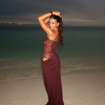 Rochia maxie Darla combină eleganța clasică cu detalii moderne, oferind feminitate și rafinament. Partea de sus din dantelă transparentă și decupajele laterale creează o siluetă armonioasă și seducătoare. Perfectă pentru evenimente de seară, întâlniri speciale sau ocazii în care doriți să vă simțiți increzătoare și sofisticată.