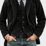 Sacoul oferă un look rafinat, iar vesta adaugă acel detaliu care face diferența.